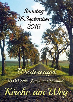 Der kreative Familiengottesdienst "Kirche am Weg" findet für alle Generationen von Klein bis Groß am 18.9.2016 in und um die St. Benedicti Kirche zu Westerengel statt. Mehr dazu gibt es hier...Von 15 bis 17 Uhr können Menschen im Rahmen eines Gottesdienstes miteinander Gemeinschaft erleben bei Kuchen, Marshmallows und Stockbrot.