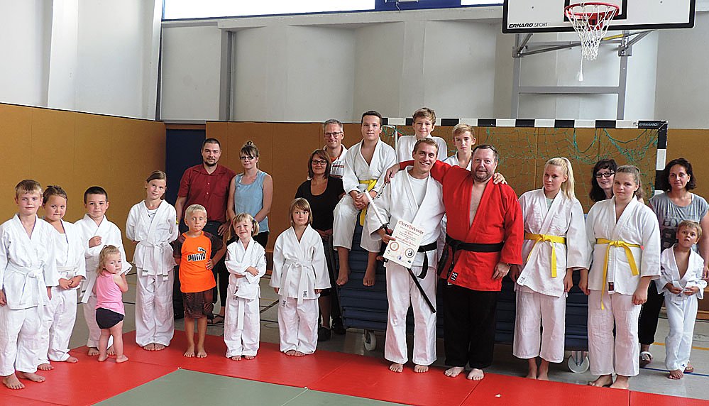 Der 1980 geborene Judotrainer und Sektionsleiter des CDK Yasuhiro Yamashita Bad Frankenhausen e.V. Marcel Mahner konnte fast auf den Tag genau am letzten Freitag sein 30jähriges Judojubiläum feiern- wenn er es gewusst hätte. Mann, damit habe ich überhaupt nicht gerechnet- was denn, wirklich schon 30 Jahre! waren seine ersten Worte, als er von seiner Trainingsgruppe, einigen Eltern und natürlich dem Vorstand des Vereins mit einer Ehrenurkunde und einem handgeschiedeten japanischen Samuraischwert überrascht wurde.