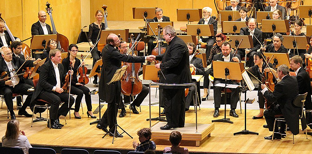 Im Mittelpunkt stand zweifellos der neue Composer in Residence, Christoph Ehrenfellner (Hier hatte nnz/kn Christoph Ehrenfellner - Composer in Residence), in seiner Funktion als exzellenter Geiger vorgestellt. Leider bot das Musikstück keine Möglichkeit Zwischenapplaus zu geben, der zweifellos verdient gewesen wäre. Umso größer war der Beifallssturm, als es dann in die Pause ging. Es war schon faszinierend, wie die hellsten Töne mit einer Präzision rüber kamen und selbst im entferntesten Winkel das Ohr schmeichelten. Die dargebrachten Kadenzen von Christoph Ehrenfellner waren Geigenkunst vom Feinsten.Wenn sich hier Christoph Ehrenfellner und der neue Generalmusikdirektor Michael Helmrath beglückwünschten, dann ging das Lob in beiden Richtungen. Der Einstieg von Michael Helmrath stand dem Einstieg von Christoph Ehrenfellner in nichts nach. Helmrath ist ein würdiger Nachfolger von Generalmusikdirektor Markus L. Frank und das Konzertpublikum in der Region kann sich freuen zwei solche Künstler zu haben.