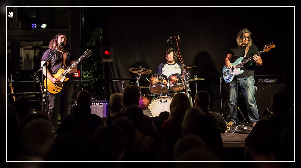 Sie betraten die Bühne, Gitarrist, Sänger und Frontmann der Band Lewis Hamilton begrüßte das zahlreiche Publikum und eröffnete den Anwesenden, dass sie ihnen etwas Blues präsentieren wollen. An seiner Seite am Bass Vater Nick Hamilton und am Schlagzeug Ben O´Reilly. Schon beim ersten Stück, einem geradeaus gespieltem mittelschnellem Blues, überzeugte Lewis Hamilton durch fingerflinkes Saitenspiel und kräftigem Gesang. Das Schlagzeug und der Bass lieferten das schnörkellose Rhythmusfundament, auf dem Lewis seine Soloeskapaden zelebrieren konnte. Damit war schon beim ersten Stück die Rollenverteilung klar.