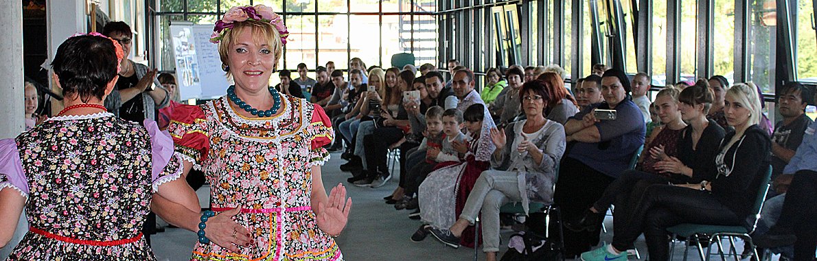 Katharina Weizel u.a. auch ehrenamtlisches Mitglied im Integrationsbeirats des Landkreises war wieder mit Mitglieder der Gruppe Kontakt bei diesem Projekttag dabei, ob bei russischen Tänzen oder Lieder, teils auch gemeinsam gesungen, wie dem Lied, "Die Gedanken sind frei".