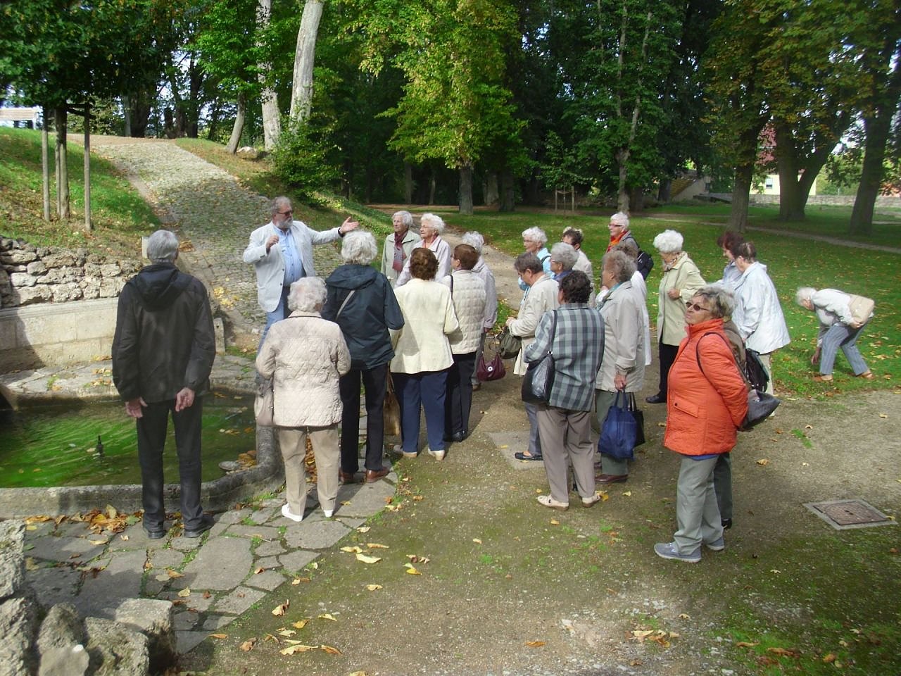 T. Leipold hatte mit Herrn Dr. Dietzsch eine besondere und sehr interessante Führung durch diesen Park organisiert. Dr. Dietzsch hat die umfangreichen Sanierungs- und Restaurierungsarbeiten dieser besonderen Barockparkanlage von Anbeginn (seit 1999) begleitet und konnte so sehr anschaulich auch über Funde, Entdeckungen berichten. Erstaunlich was unter Schutt- und Erdbergen so zum Vorschein kommen kann. Leider ist die Schlossanlage nicht mehr erhalten, aber der Park alleine ist schon eine Besonderheit und lädt den Besucher zum Staunen und Verweilen ein.
