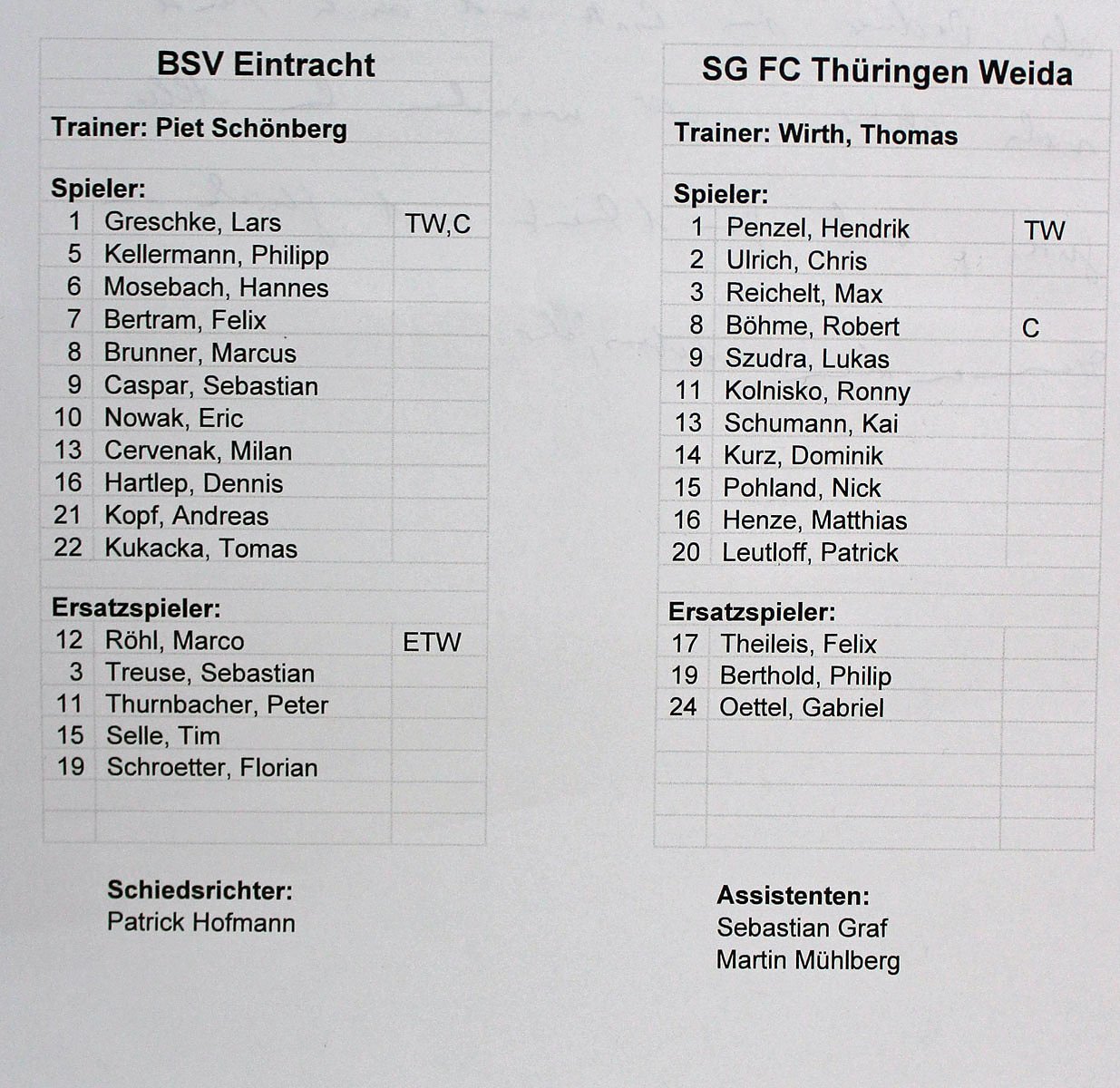 Und so spielte man. Gewechselt wurde auch. In der 62. Minute kam Florian Schötter für Dennis Hartlepp, in der 84. Minute Tim Selle für Sebastian Caspar und in der Nachspielzeit Peter Thurnbacher für Milan Cervenak, um noch etwas Zeit zu "schinden". Die Gäste wechselten in der 74, Minute Gabriele Oettel für Torschütze Dominkk Kurz und in der 79. Minute Philip Berthold für Max Reichelt.