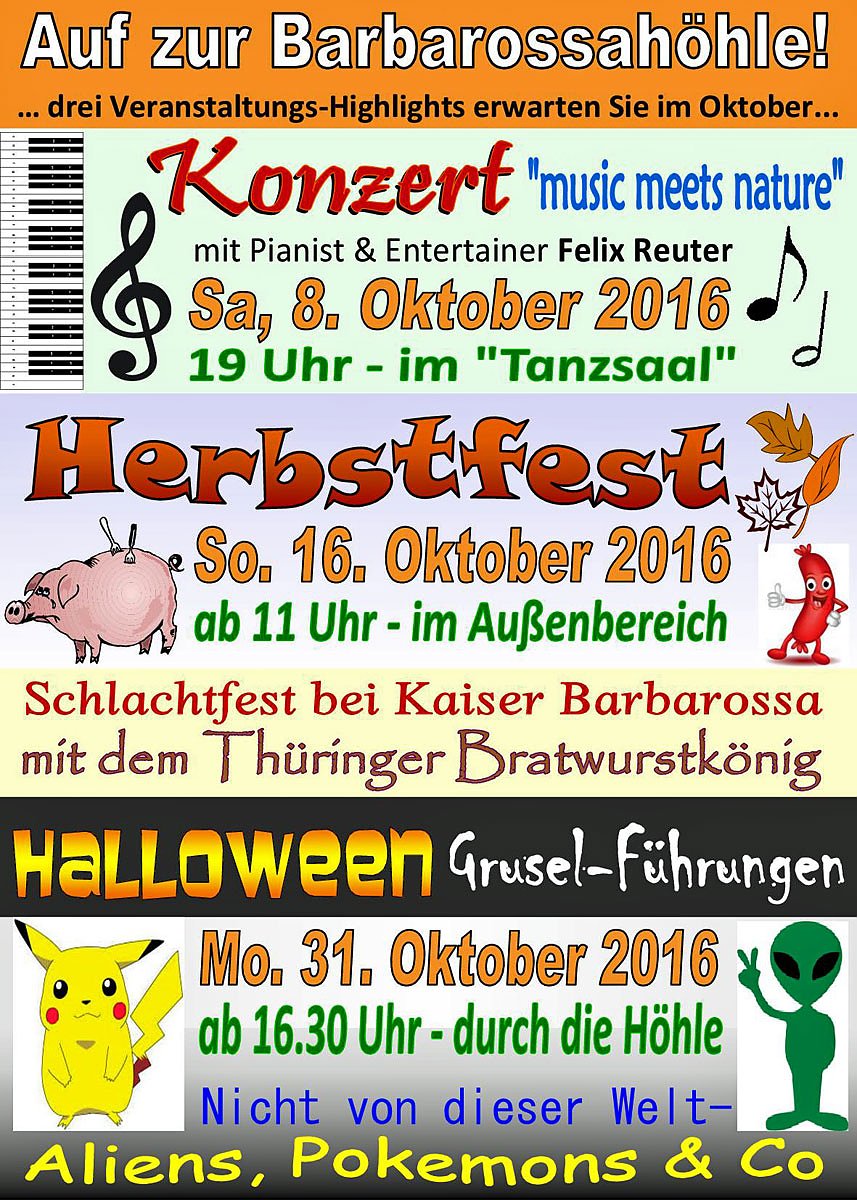 Herbstfest an der Barbarossahöhle am Sonntag, den 16. Oktober 2016 unter dem Motto: