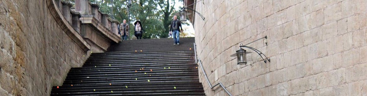 Mit einer Posaune wurde die wenigen Besucher bei teils häßlichem Nieselwetter begrüßt und mit einer Welle kleiner Bälle überschwemmt.