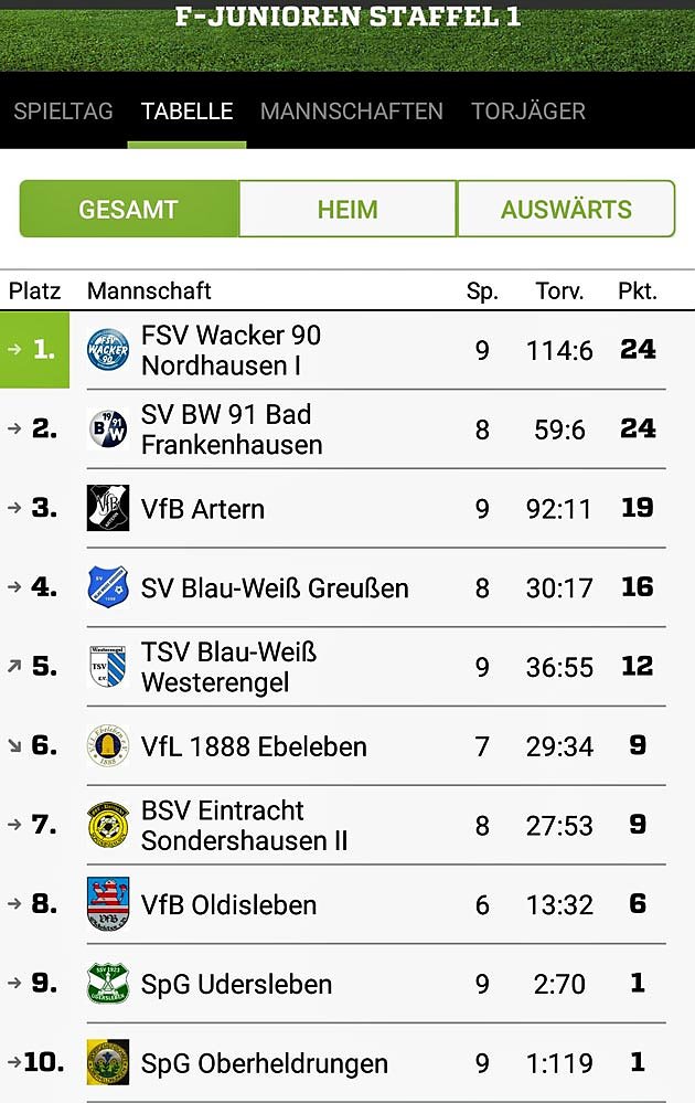 Autor: khhAm vergangenen Sonntag (30.10.2016) kam es im Stadion in Schönfeld zum Spitzenspiel in der F-Junioren Kreisliga Nordthüringen Staffel 1. Der VfB Artern als Tabellendritter mit 19 Punkten empfing die Nachwuchskicker vom SV Blau-Weiß 91 Bad Frankenhausen, welche alle bisherigen 7 Punktspiele siegreich gestalten konnten.