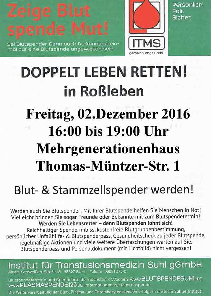 Das Institut für Transfusionsmedizin Suhl gGmbH bietet diesen Termin an: