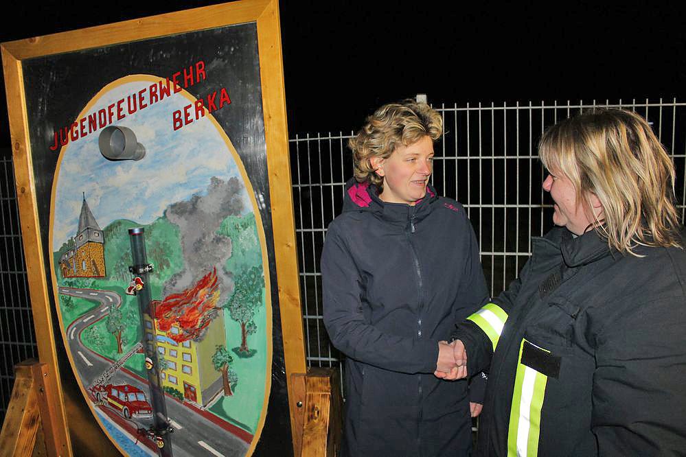 Von dem Geld konnte sich die Jugendfeuerwehr Berka endlich die langersehnte Spritzwand kaufen. Marika Bauersfeld von der Sondershäuser Firma CSC übergab die Spritzwand.