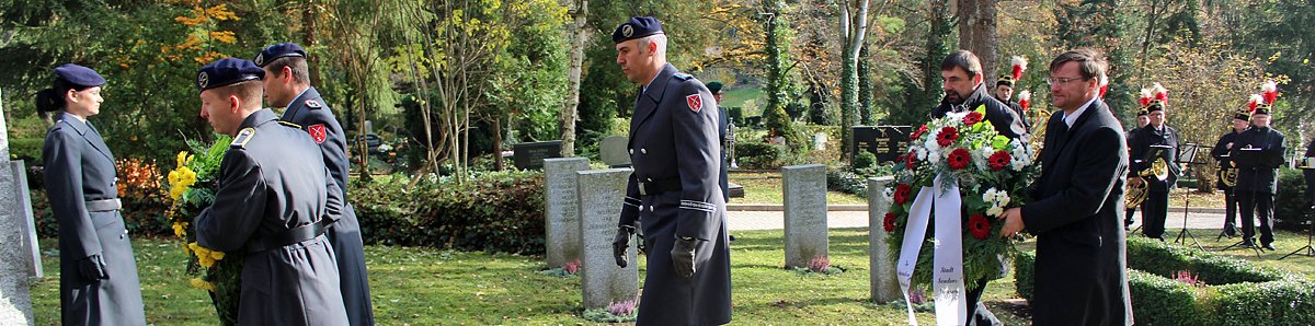 Die Stadt Sondershausen, vertreten durch Bürgermeister Joachim Kreyer (CDU), und der Standortälteste und Kommandeur des Feldwebelanwärter/-Unteroffiziersanwärter- Bataillons 1 Sondershausen, Oberstleutnant Ulrich Rölle, legten am Ehrenmal Kränze nieder.