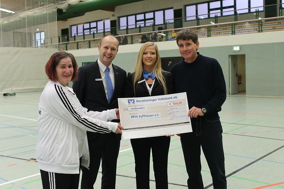 Man konnte aber auch zwei Gäste der Nordthüringer Volksbank begrüßen. Der Filialleiter Sondershausen, Michael Hartmann und Mitarbeiterin Juliane Zapf hatten einen Scheck in Höhe von 500 Euro dabei. Es ist nicht das erste Mal, dass die Nordthüringer Volksbank die BRSG Kyffhäuser e.V. unterstütze, die sich besonders dem Behindertensport verpflichtet sieht.