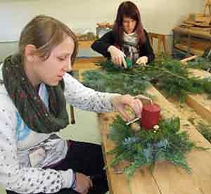 Passend zur bevorstehenden Adventszeit gestalteten Schüler und Schülerinnen aller Ausbildungsberufe des Förderbereichs unter fachkundiger Anleitung kreative Weihnachtsgestecke, weihnachtliche und winterliche Dekorationen aus Naturmaterialien und Holz, zum Beispiel beleuchtete 3D-Fensterbilder und selbst genähte und bemalte Kissen, die von den Schülern als Geschenke für Familie und Angehörige mit nach Hause genommen werden konnten.Hierbei benötigten die Teilnehmer nicht nur handwerkliche Fähigkeiten und fachtheoretische Kenntnisse aus der Berufsausbildung, um diese praxisbezogen anzuwenden, sondern es waren auch Kreativität und wichtige soziale Kompetenzen durch die gemeinsame Arbeit im Team gefragt.