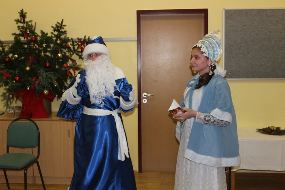 Gemeint ist Väterchen Frost der auch gleich eine Gehilfin dabei hatte. Er will mit dem Schlitten gekommen sein. Nun ja, kalt genug war es gestern noch. Und er kam nicht mit leeren Händen. An die vielen Gäste im vollen HOC wurden kleine Präsente verteilt.