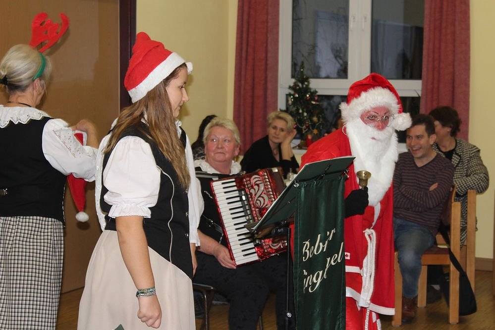 Vorher gab es jedoch so richtig etwas auf die Ohren und die Seele. Die Bebraer Singvögel erfreuten mit vielen Weihnachtsliedern und Sketchen, die meist Helga Marx (ganz links) geschrieben oder inszeniert hat. Viel Beifall gab es für die Weihnachtsmaus die wohl nicht nur dort ihr Unwesen trieb. Auch Weihnachtswichtel waren da.