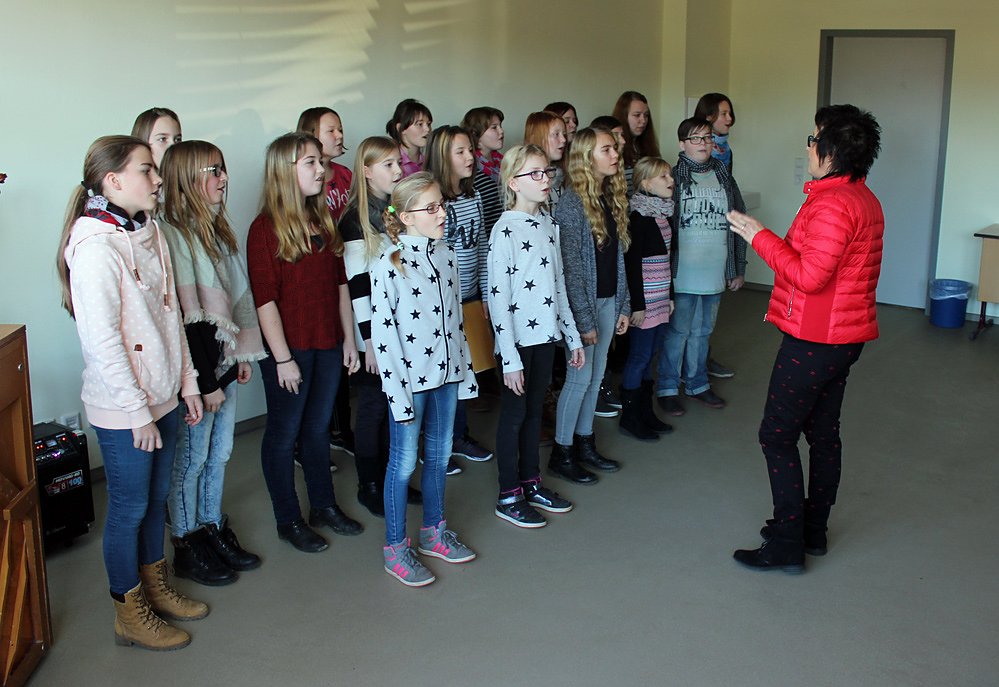 Zur Begrüßung der Gäste sang der Schulchor unter der Leitung von Petra Trautmann den Gästen eine Ständchen. Auch Dominique Kühn mit seiner Geige gab der Eröffnung im neuen Multifunktionsraum den feierlichen Rahmen.