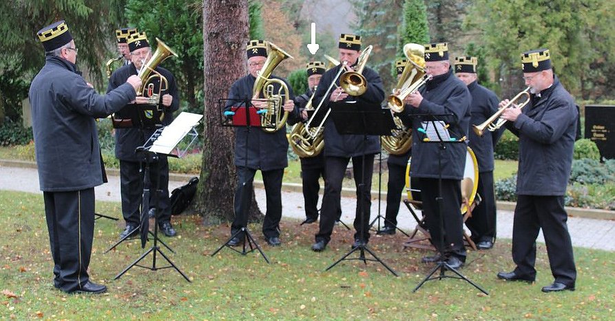 Im Orchester steht er mit seiner großen Tuba oft weit hinten und wird von der Kamera leider selten erfasst. Es ist regelmäßig beim Volkstrauertag dabei.
