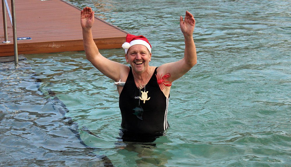 Jens Lüdecke, den Geschäftsführer der Kur- und Tourismus GmbH Bad Frankenhausen, konnte kn auch im Wasser entdecken. Und wen kn recht gesehen hat, müssen weitere Eisbader aus dem Jahre 1993 dabei gewesen sein: