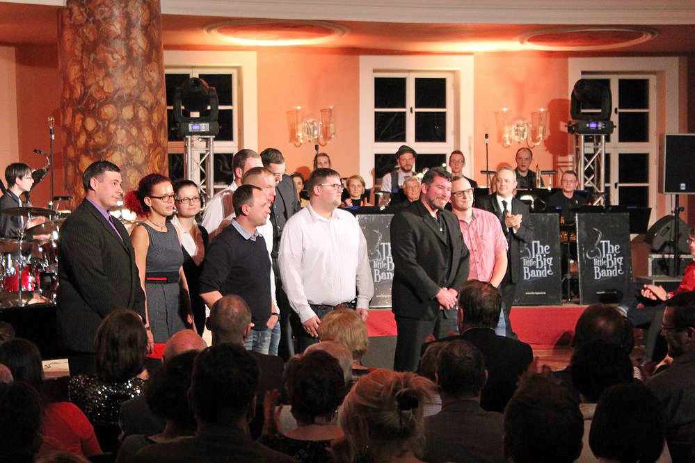 Zusammen mit Alexander Grüner moderierte Matthias Deichstetter, musikalischer Leiter und Mitspieler der The Little Bigband des Carl-Schroeder-Konservatoriums das Programm. Zum großen Erfolg das Programms trugen die reizenden Sängerin Irene Steußloff, Entertainer und Sänger Marcus Kämmerer, Gitarren-Virtuose Klaus-Dieter Weigert, die junge Flötistin Johanna Schneegans, sowie Geigerin Katrin Deichstetter mit Ihrer Violine bei, die sich gegenüber den vielen Bläsern durchsetzen konnte.