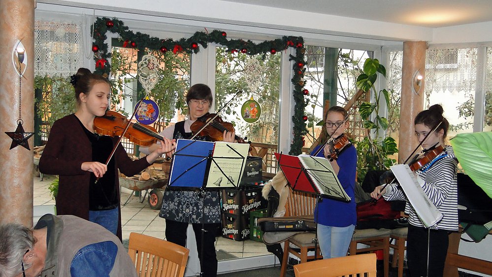 Zu Kaffee und Kuchen las Kerstine lustige Weihnachtgeschichten. Anschließend wurde zu den zauberhaften Klängen der Geigen und Bratschen der Streichergruppe von Frau Rasch (Musikschule Carl-Schroeder Sondershausen) rege mitgesungen. Ein schöner Tag klang aus.