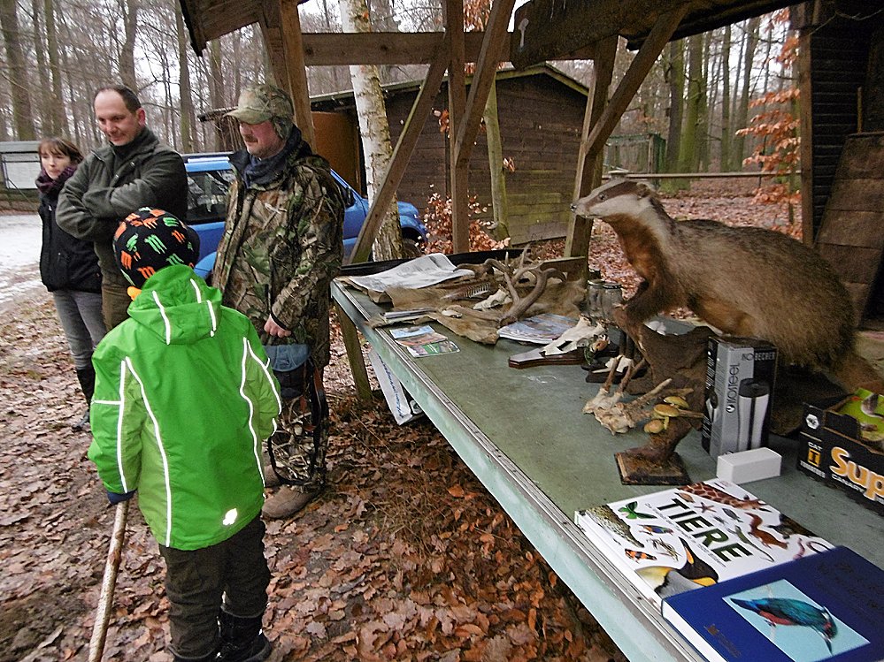 Autor: khhBegleitet von der Leiterin des Mehrgenerationenhauses Susanne Kammlodt und der Schulsozialarbeiterin Sandra Philipp, ging es am Dienstagmorgen um 10 Uhr mit den Bussen direkt in den Wald zur Jägerhütte. Vor Ort wurden wir bereits von dem Jäger Olaf Philipp sowie tatkräftigen Helfern und sogar 2 Jagdhunden erwartet.