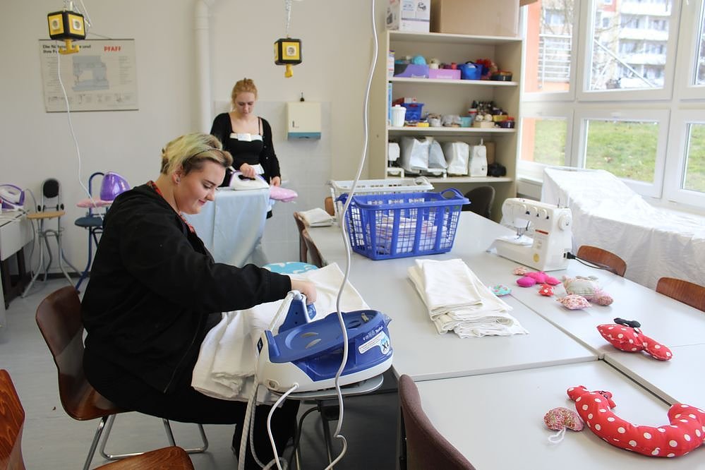 Bei der Hauswirtschaft konnte man sich überzeugen, wie das mit dem Bügeln geht. Hier ist kn schnell weiter, denn das Bügeln ist nicht die große Stärke bei kn.
