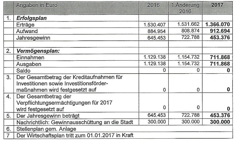 Der Wirtschaftsplan soll im nächsten Jahr fast einen Gewinn von einer halben Million Euro bringen.
