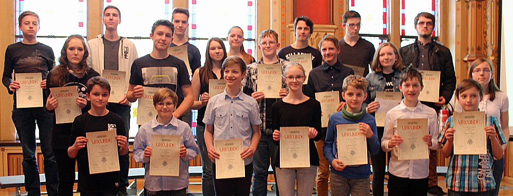 Die Preisträger kamen aus der Klosterschule Roßleben (4), dem Geschwister-Scholl-Gymnasium Sondershausen (8), Kyffhäusergymnasium Bad Frankenhausen (7), der TGS Greußen (3) und dem SBZ (1).