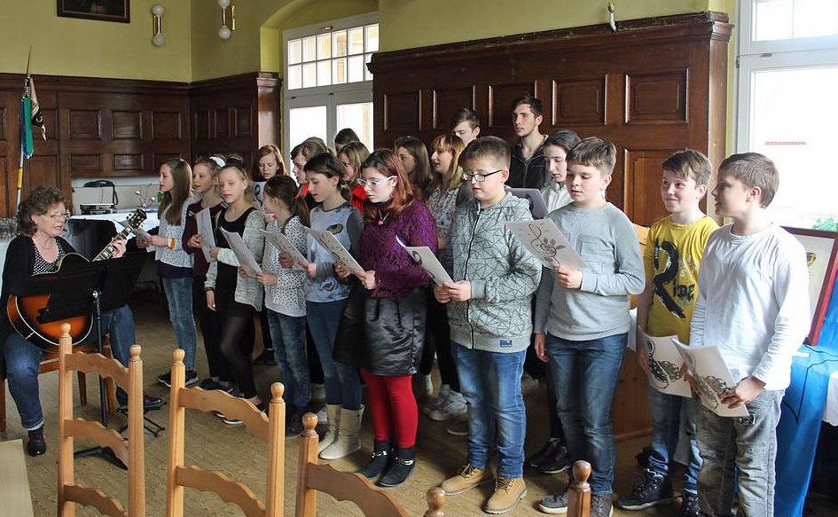 Nach dem Anstoßen mit einem Glas Sekt wurde die Patenschaft endgültig besiegelt und mit einem kleinen Festprogramm von Schülerinnen und Schülern der Borlach-Schule abgeschlossen. Bei einem anschließendem Imbiss und der einen oder anderen Tasse Kaffee (Glas Bier) wurden erste Kontakte geknüpft.