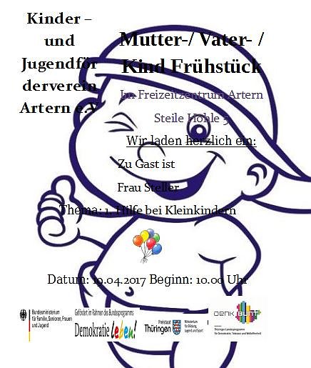 Das Mutter-, Vater-, Kindfrühstueck mit Frau Zimmer, Bürgermeisterin der Stadt Artern, findet dann am 24.05.2017, 10.00 Uhr statt.