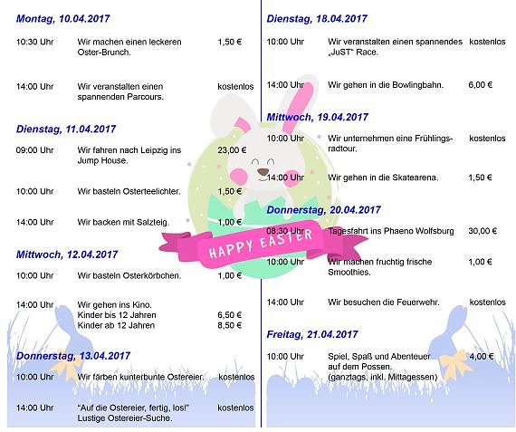 Bald beginnen die Osterferien und das Team des JuST Sondershausen hat fuer seine Besucherinnen und Besucher wieder ein aufregendes und abwechslungsreiches Ferienprogramm zusammengestellt...
