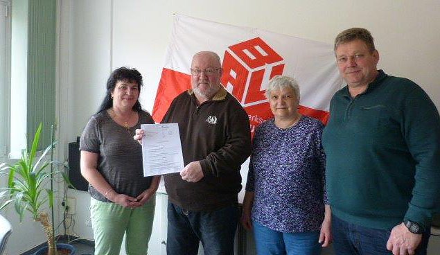 Im Bild: Heike Hahn (Rechtsschutzbeauftragte), Helmut Mirre mit Ehefrau sowie Olaf Wollert (Branchensekretär) v.l.n.r.