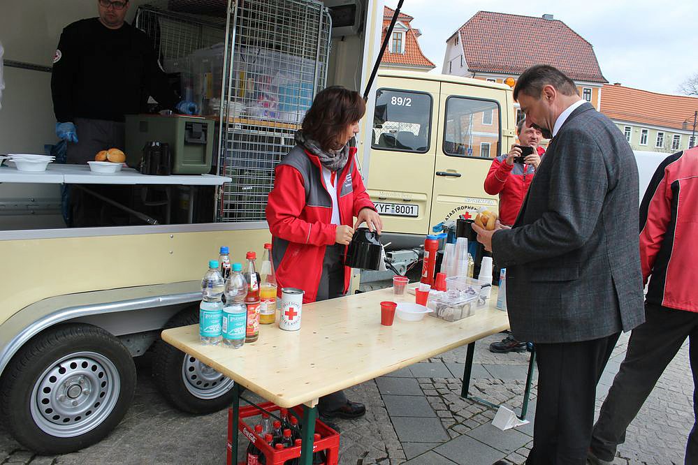 Sehr ruhig ging es allerdings auf dem Markt von Sondershausen zu. Die Kameradinnen und Kameraden des Kat-Schutzes hatten extra ihren Verpflegungswagen mal für die große Öffentlichkeit aufgestellt, aber kaum jemand kam, zumindest in der Zeit von 11:45 bis kurz vor 12 Uhr.