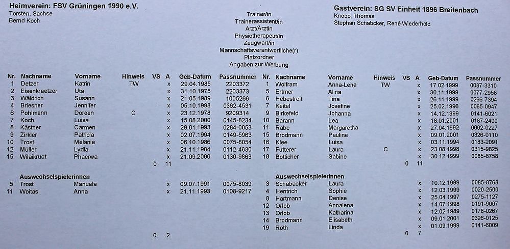 Mit einem Eigentor von Tina Hebestreit geriet Breitenbach in der 51. Minute in Rückstand und konnte schon in 54. Minute ausgleichen.