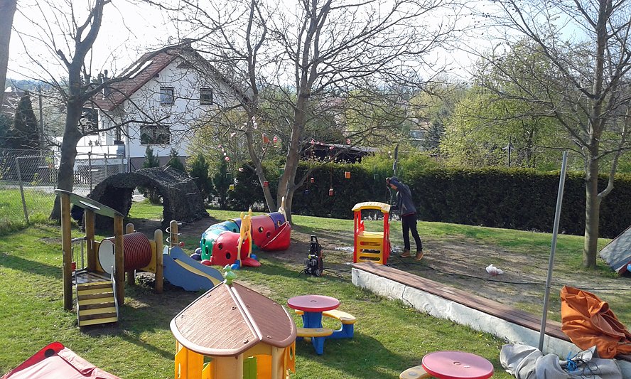 Nunmehr zum dritten Mal trafen sich Eltern und Erzieherinnen der Kita Helbespatzen in Ebeleben am 27. Und 28. April, um ihren Kindergarten für den Frühling vorzubereiten. Über 30 fleißige Helfer und Helferinnen waren gekommen, um kräftig mit anzupacken. Eingelagertes Sommerspielzeug wie Rutschen oder Spielburgen wurden abgestrahlt und aufgestellt.