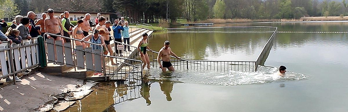 Der Badebetrieb ist mit dem heutigen Anbaden voll eröffnet, so Genzel gegenüber kn, auch wenn man schon vorher baden konnte. Zwar zeigte ein Thermometer 11°C an, aber so recht dran glauben wollten selbst die nicht, die im Wasser waren. Und etwas tiefer im Wasser war es bestimmt kälter.