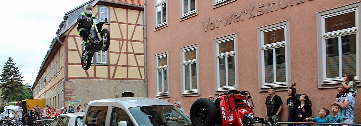 Die Stuntshow mit Mike Auffenberg war zweifelsohne ein Klasse Höhepunkt was die Stadt Sondershausen und die Autohäuser des 9. Autofrühlings zu bieten hatten und die Zuschauer waren begeistert!
