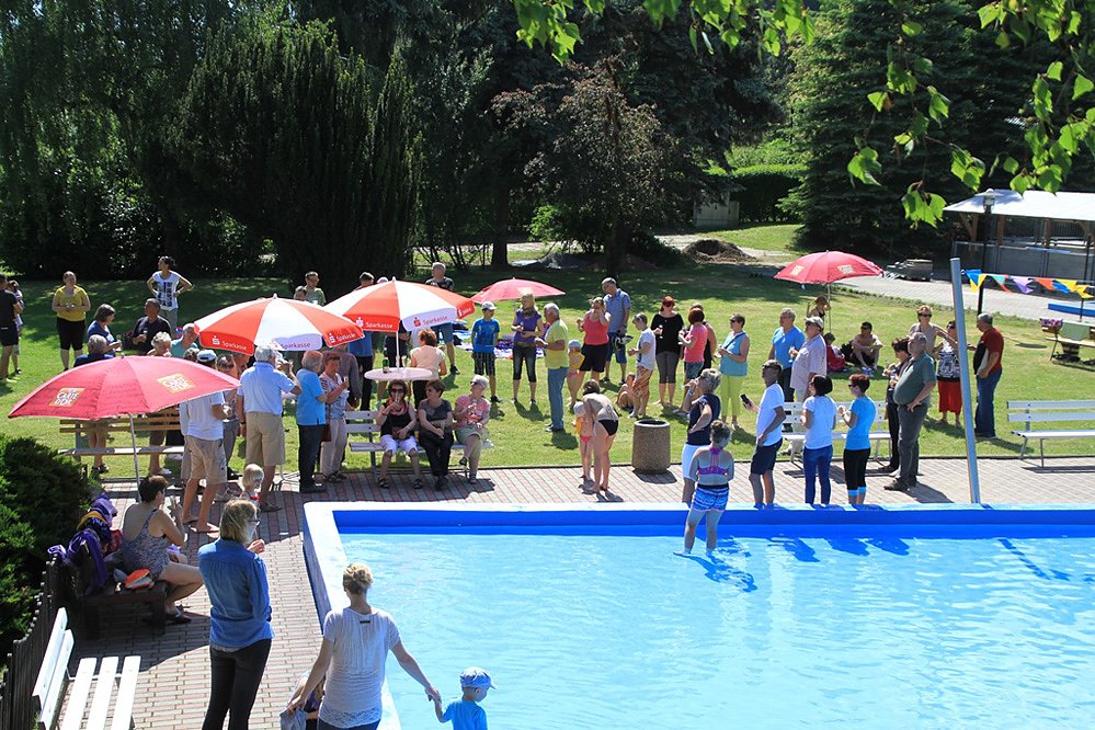 Nach der Zwangspause im Jahr 2016, in dem das Bad aufgrund von langwieriger Reparaturarbeiten am Schwimmbecken geschlossen bleiben musste, wurde der Start in diesem Jahr ganz besonders zelebriert. Die Gemeinde Oldisleben eröffnete das Freibad feierlich gemeinsam mit dem Freundeskreis Sport in Oldisleben e.V.. Neben einem kleinen Sektempfang für die zahlreich erschienenen interessierten Bürgerinnen und Bürger sowie Badegäste wurde über die bisherigen Erfolge berichtet.