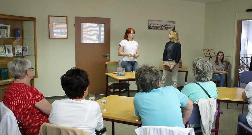 Begrüßt wurden die Zuhörerinnen von Carmen Siegert. Auffällig, war, dass tatsächlich nur Zuhörerinnen in die Bibliothek gekommen waren!