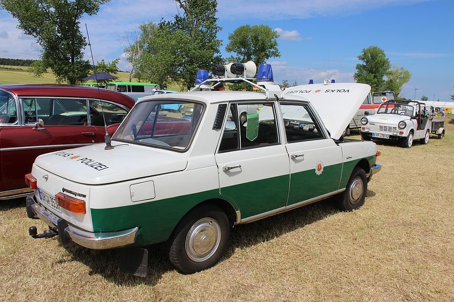 Hier hatte man die Möglichkeit, so einem Polizeiauto aus DDR-Zeiten in sein sparsames Innenleben zu schauen.