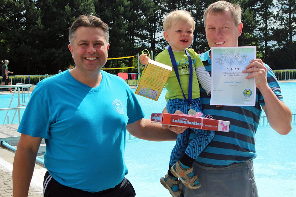 In der Sonderwertung 0 bis 5 Jahre, ja sie lesen richtig, war es Julian Willy Ruppert, der mit vier komplett geschwommenem Bahnen einen Ehrenpreis gewann. Glückwunsch!