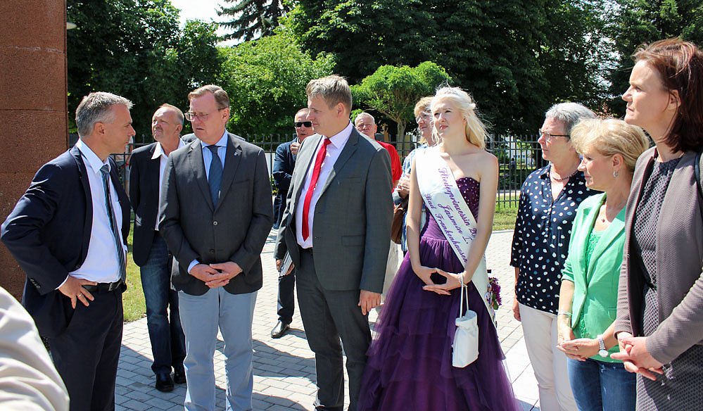 Zum Baden blieb Thüringens Ministerpräsidenten Bodo Ramelow (Die Linke ) keine Zeit, zu straff war der Zeitplan, denn nach dem Besuch ging es noch zu schiefen Turm von Bad Frankenhausen mit zwei Zwischenstopps bei den historischen Salzsiedern.