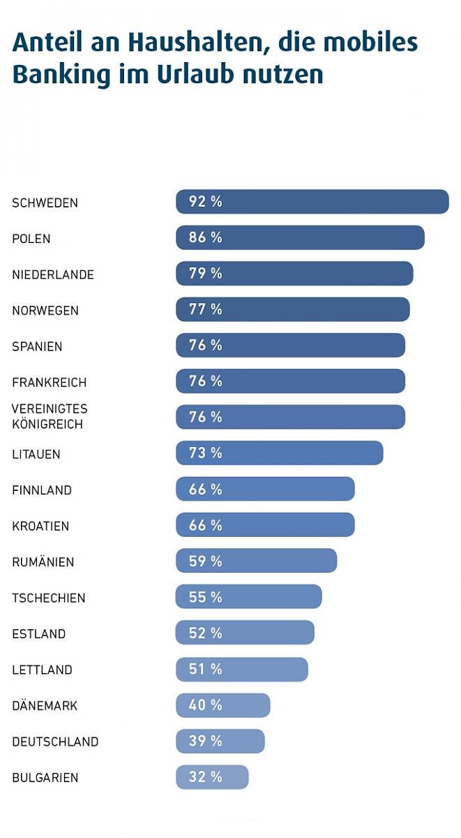 Krystof Kuban, Geschäftsführer der Ferratum Germany, kommentiert: Die Verteilung des Urlaubsbudgets zeigt einmal mehr, dass die Europäer ihren Urlaub am liebsten im eigenen Land verbringen und dabei sehr unterschiedliche Prioritäten setzen, was die Aktivitäten im Urlaub betrifft. Auffällig ist dabei, dass viele Europäer auch im Urlaub mobiles Banking rege nutzen. Eine besonders hohe Affinität zeigen hier die Schweden: 92 % der Haushalte nutzen dort mobile Bankangebote das ist europaweit Spitze. Im europäischen Vergleich haben die Deutschen hier mit einem eher niedrigen Wert von 39 % durchaus noch Nachholbedarf.