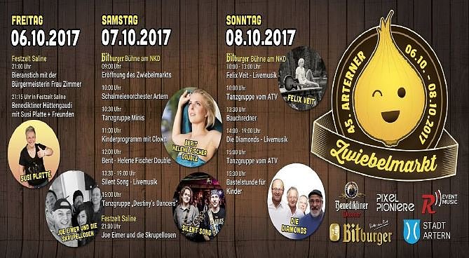 Vom 06.10. – 08.10.2017 gibt es wieder einen Zwiebelmarkt in Artern und hier finden Sie das Programm zum Vormerken...