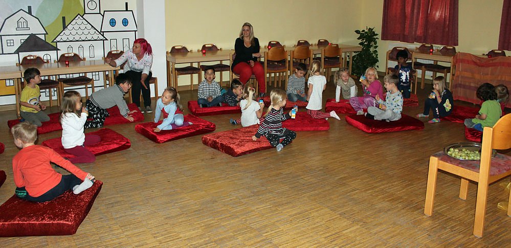 Vorgelesen wurde heute das Märchen vom kleinen Muck. Selbst bei den Sprachen russisch und arabisch, wie schon in den letzten Jahren (voriges Jahr war es die Schmetterlingsgruppe), waren die Kleinen mucksmäuschen still. Mit zugezogenen Gardinen und Teelichtern, wurde die notwendige Stimmung geschaffen.