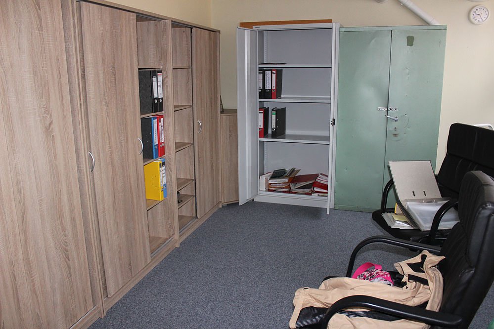 Und so nutzt sich einiges ab. Jetzt konnten die Fußbodenbeläge ausgetauscht werden und auch einige Schränke und wie hier im Bild neue Tische aufgestellt werden.