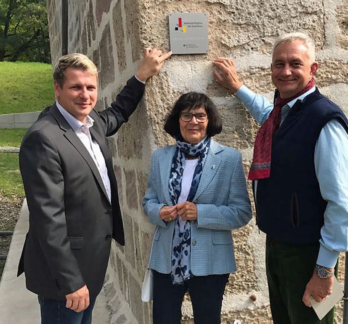 Im Beisein von Bad Frankenhausens Bürgermeister Matthias Strejc und Bärbel Köllen übergab der Bundestagsabgeordnete Steffen-Claudio Lemme heute offiziell die Plakette des Bundesbauministeriums an die Stadt Bad Frankenhausen.