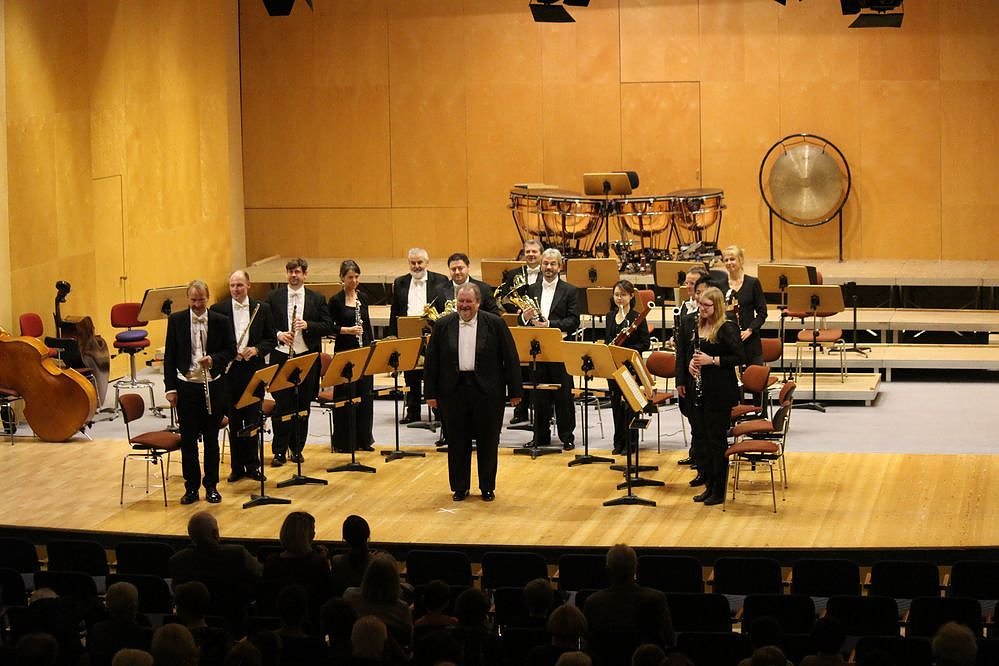 Es war schon ein ungewöhnlicher Anblick, neben dem Dirigenten Michael Helmrath nur Bläser auf der Bühne zu sehen. Es sah nicht nur ungewöhlich aus, sondern hörte sich auch ungewöhnlich an und des im positivsten Sinne.