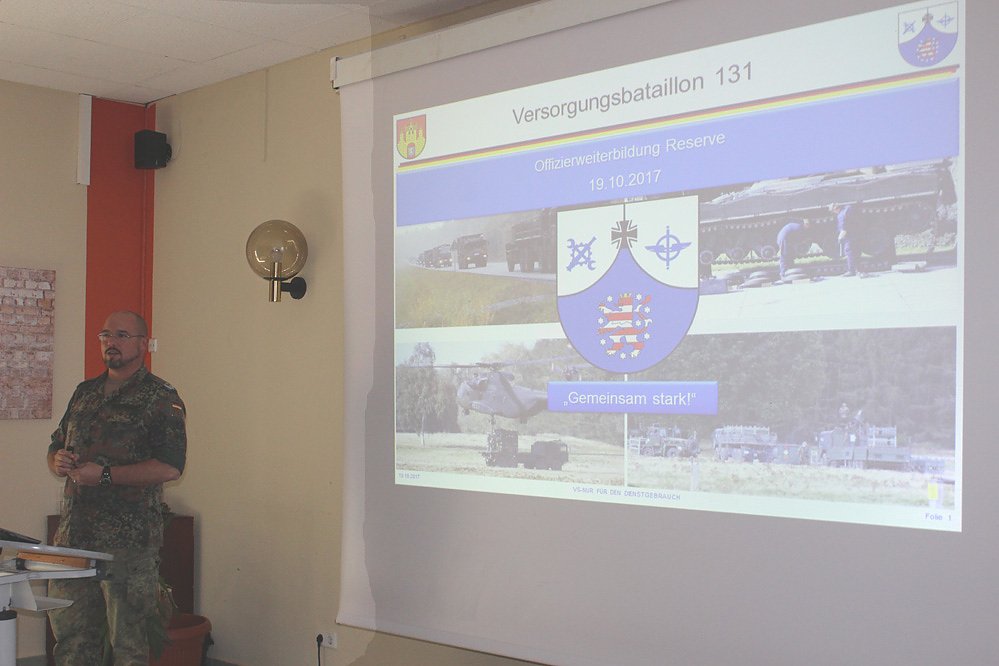 Das Versorgungsbataillon 131 führte deshalb am letzten Donnerstag Weiterbildung von Offizieren der Reserve zum Thema Reserve der Bundeswehr durch. Zusätzlich zu den aktiven Offizieren des Bataillons als Multiplikator für den unterstellten Bereich wurden über 500 ehemalige Offiziere angeschrieben.