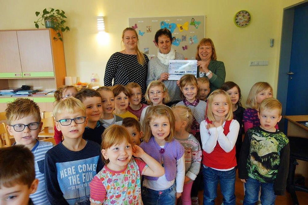 Alle Kinder folgten sehr aufmerksam und aktiv den Worten der Vorleserin und so gab es am Ende für alle Süßigkeiten. Dazu übergab Frau Martin-Gehl in Anwesenheit der Bürgermeisterin Susann Weber noch eine kleine Spende sowie ein Buch an die Leiterin der Einrichtung Katrin Reinhardt.