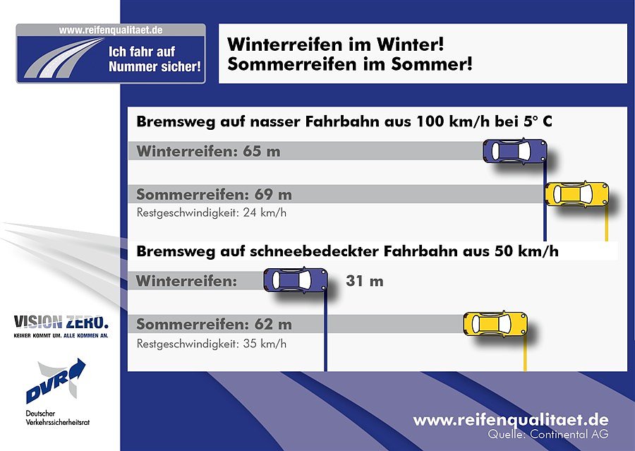 Wer dem nicht nachkommt, oder mit einem Reifenprofil unterhalb der gesetzlich vorgeschriebenen 1,6 Millimeter unterwegs ist, riskiert die Sicherheit aller Verkehrsteilnehmer. Ein Bußgeld in Höhe von 60 EUR* für den Fahrer, von 75 EUR für den Fahrzeughalter und ein Punkt in Flensburg kommen noch dazu.