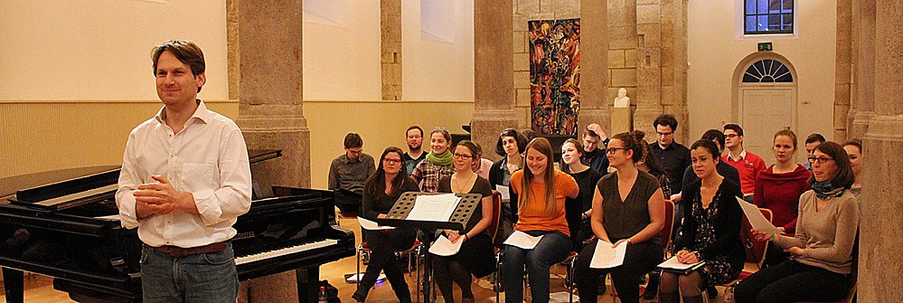 Ausgiebig geprobt wurde aber zuerst ein Stück von Max Reger, "Abendlied". Das neue Programm des Landesjugendchors wird sich mit dem Thema Nacht beschäftigen und das in den vielfältigen Facetten: